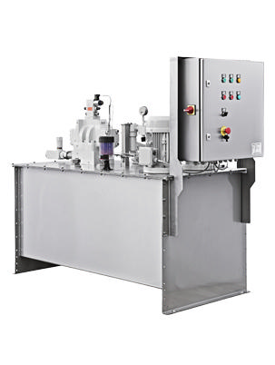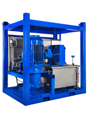 Tank på 500 liter med neddykket pumpe. Ventil- og filterudrustning er placeret indenfor tanklågets grænser. HPU er designet til operation med HFC væske, som stiller særlige krav til materialer på både tank, pakninger og komponenter, grundet den tilladelige høje temperatur for mediet. HPU'en leveres ligeledes med en el-styring som en skræddersyet løsning – altså en turnkey-solution.