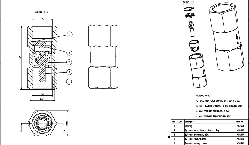 Termostatventil, 45°, G1"